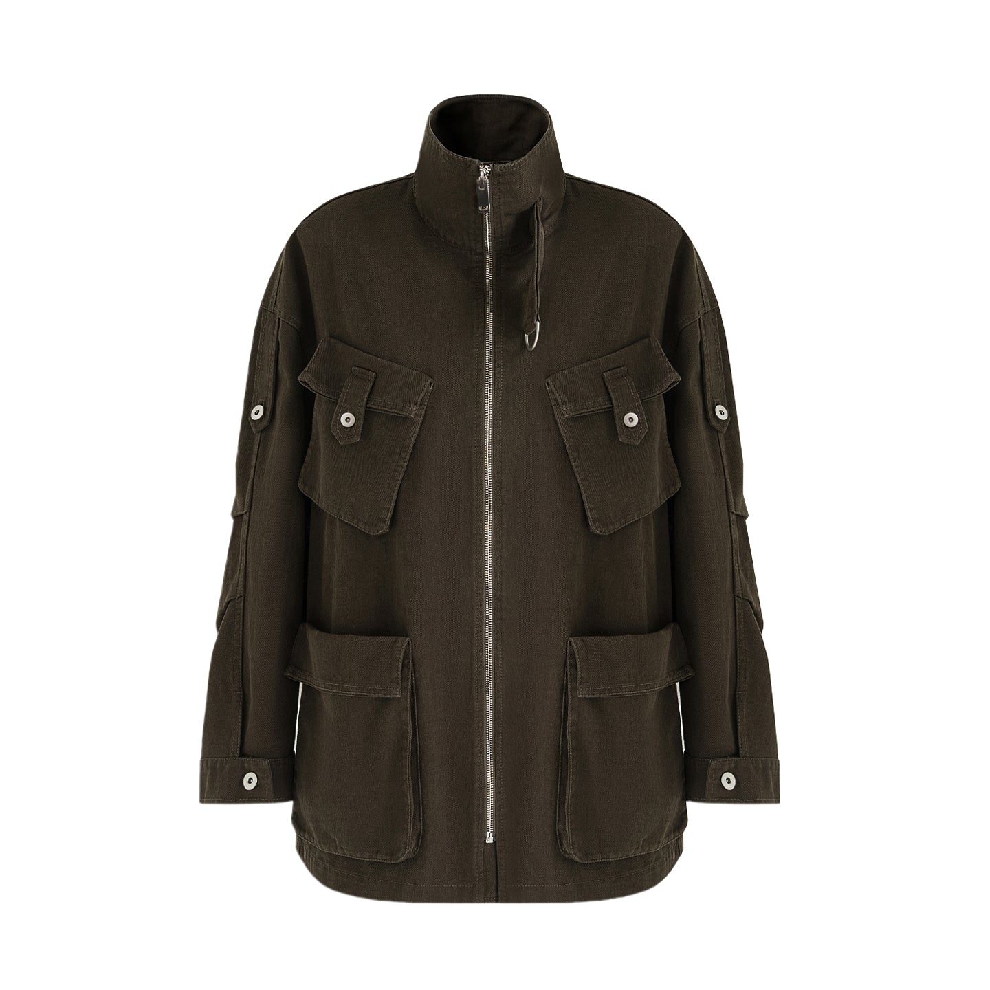 Embrace effortlessly chic confidence in this washed dark green utility jacket. Its generous, cloud-like silhouette and gracefully dropped shoulders redefine relaxed structure. Featuring pragmatic, layered utility pockets and perfectly balanced proportions, this piece ensures you master the art of 'no bulk' layering, even over chunky knits. Own the look of timeless, soft-touch vintage coolness.